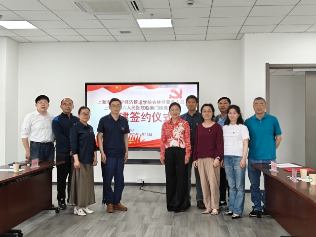 2025年5月13日,bat365中文官方网站农林经管系党支部与上海市第六人民医院临港门诊党支部在经济管理学院B702会议室举行结对共建活动。农林经管系党支部书记李欣、市六院临港门诊党支部书记王雄及双方党员代表出席活动。