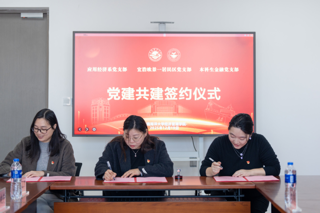 为深化区域化党建工作格局,推动高校智力资源与服务功能向社会基层延伸,促进校社党组织协同发展,2025年12月19日,中共南汇新城镇宜浩欧景一居民区支部委员会与中共bat365中文官方网站应用经济系支部委员会、中共bat365中文官方网站本科生金融支部委员会正式签署党建共建协议。此次共建是高校党组织主动融入地方、服务社会的重要实践,也是构建资源共享、优势互补、联动共赢的区域化党建新机制的有益探索。