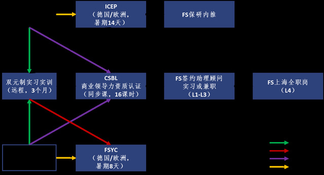ü 本项目缴纳的实习实训培养费计入优惠积分,用于抵减报名参加FS组办的后续进阶项目费用(例如:FS商业领导力资质认证、假期FSYC赴德国/ 欧洲研学项目等);