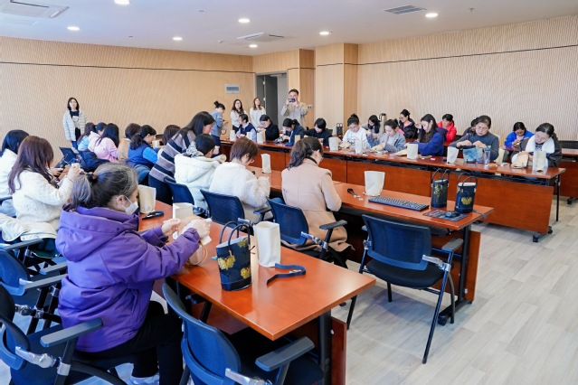在专业非遗手工老师的细致讲解与指导下,老师们认真学习了牛皮材质特性、工具使用方法及基础制作技巧。大家专注凝神、巧手翻飞,互相交流心得、彼此协作,将匠心与巧思融入每一针一线,最终将普通的牛皮材料雕琢成一件件精致独特的专属牛皮包。活动现场暖意融融、欢声笑语不断,平日里坚守三尺讲台的女教师们化身心灵手巧的“手作匠人”,尽显巾帼风采。