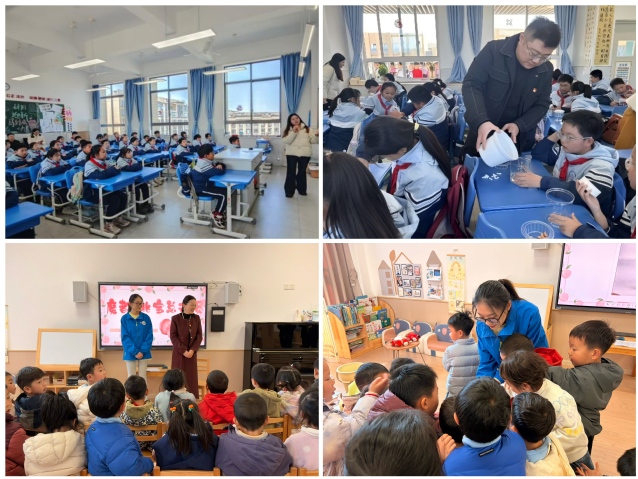 3月13日,党支部志愿者走进冰厂田幼儿园,将同一主题课程以更贴近幼儿认知特点的方式进行设计和转化。志愿者们以“猜谜语、认桃子”为切入点,引导幼儿认识水果外形特征与生长规律,并借助图文展示、互动问答等教学手段增强课堂吸引力。同时,巧妙融入古诗句与农耕故事,使幼儿在趣味互动中潜移默化地接受中华优秀传统文化的熏陶。在实践环节,志愿者们耐心指导幼儿完成水培花生种植,鼓励他们在观察、动手和等待中感知生命规律,培养探索意识与劳动习惯,实现了课程的知识性、趣味性与育人价值的有机统一。